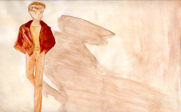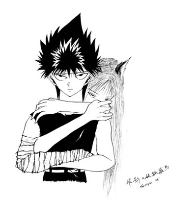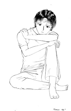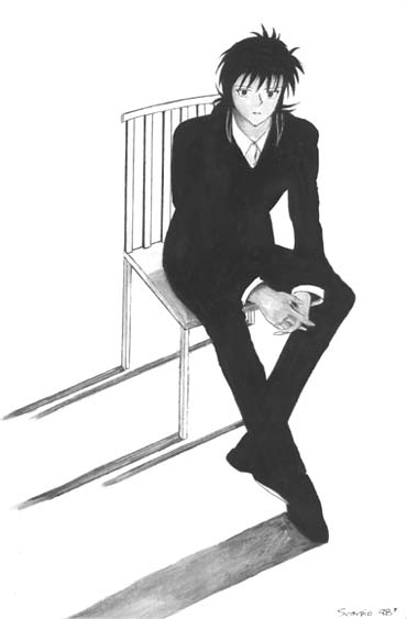 Yuusuke So far the only pic with colour... it was too big for the scanner so the foot's been cut off. ^^" Wait till I scan it again...